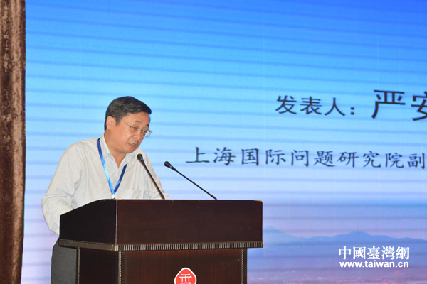 上海国际问题研究院副院长、研究员严安林作主题演讲。(图片来源:四川省台办)