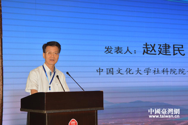 台湾中国文化大学社科院院长赵建民作主题演讲。(图片来源:四川省台办)
