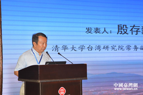 清华大学台湾研究院常务副院长、教授殷存毅作主题演讲。(图片来源:四川省台办)