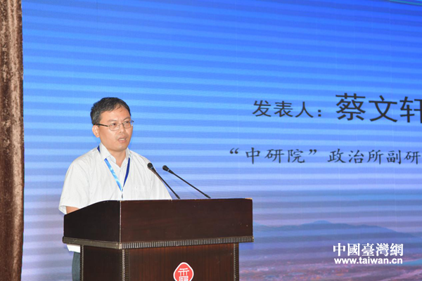 台湾“中研院”政治所副研究员蔡文轩作主题演讲。(图片来源:四川省台办)