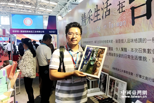 台商蔡佳欣与他的产品。(中国台湾网 赵苗青 摄)