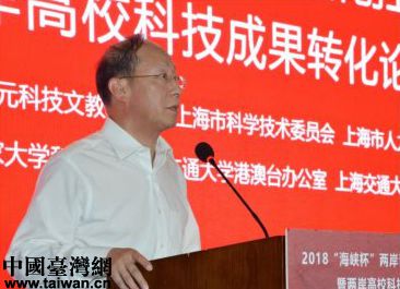 中国台湾网7月9日上海讯 2018“海峡杯”两岸青年创新创业周开幕式暨两岸高校科技成果转化论坛7月8日在上海交通大学隆重举行。这是上海交通大学多年与台湾交流的传统活动,也是上海科技企业孵化器30周年的巡礼。海峡两岸关系协会秘书长马国樑,上海市政府台湾事务办公室主任李文辉,上海交通大学党委常委、副校长王伟明,上海市科学技术委员会副巡视员刘勤,台湾东元科技文教基金会副执行长苏玉枝,亚洲企业孵化协会主席、台湾中华创业育成协会理事长黄经尧等,以及来自台湾、大陆暨香港二十余所高校的育成孵化机构、大学科技园的负责人和海峡两岸三十余所高校的200余名师生出席了活动。上海交通大学港澳台办公室主任罗鹏主持了仪式。