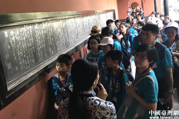 武侯祠《出师表》前听讲解。(图片来源:成都市台办)