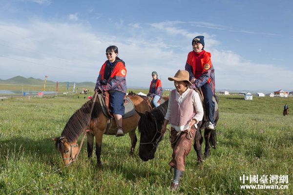 行程中,在当地牧民的帮助下,台湾同学们还特别体验了骑马。“第一次骑马,感觉快要飞出去了!”“原来骑马是这种感觉,有点颠诶。”“太开心了!马真的很乖!”骑到马背上,大家也终于体会到了游牧民族骑马驰骋在大草原上的感觉。