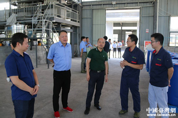 中国台湾网7月26日抚州讯 7月19日,江西省台联会长徐友洪一行4人来到抚州市金溪县台湾工业小区走访调研,并与台资企业相关负责人进行座谈。金溪县委副书记黄德明、市台办副主任毛奇锋陪同调研。