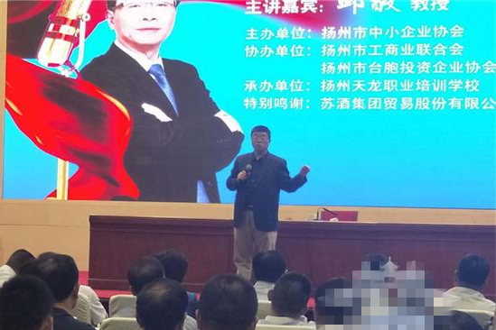 中国台湾网7月30日扬州讯 28日,台湾中国文化大学教授邱毅先生赴扬州,讲授“新时代中国经济新战略,企业如何趁势崛起”专题讲座。扬州市近千名中小企业家、台商代表等参加讲座,了解当今世界的最新宏观经济形势,为企业创新发展提供战略思维支持。扬州市台办、市中小企业局等部门领导聆听讲座。