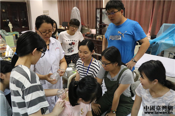 体验拔火罐。(图片来源:山东台办)