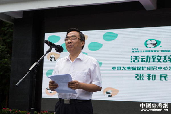 中国大熊猫保护研究中心主任张和民致辞。(图片来源:四川省台办)