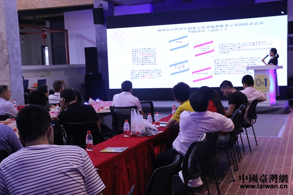 交流会上,福州市台办经济处副处长徐娴从适用对象、适用范围和政策内容三个方面,向大家讲解“66条实施意见”。福州市台办经济处处长黄海森对台湾青创工作进行了总结。他表示,近几年福州对需要帮助的台湾创业青年进行了“政策支持和精准扶持,”接下来将继续鼓励台湾青年来榕创业。