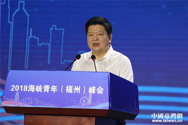 中共中央台办、国务院台办副主任龙明彪出席2018海峡青年(福州)峰会并发表致辞。(中国台湾网 郜利敏 摄)