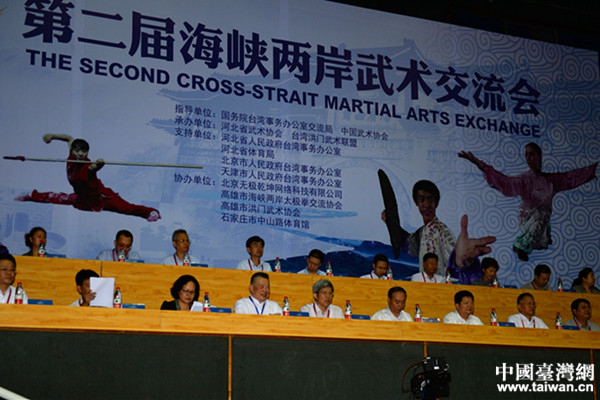 中国台湾网8月27日石家庄讯 近日,第二届海峡两岸武术交流会在河北省石家庄成功举办。活动以“弘扬尚武精神、传承民族文化”为主题,有来自京津冀台近500名武林高手将同台竞技,共同弘扬中华武术文化。国务院台办副主任龙明彪、河北省副省长徐建培、台湾中华全球洪门联盟总会长刘会进等领导和嘉宾出席活动,省台办主任王立杰主持开幕式。