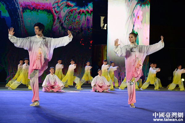 开幕式表演共分武之魂、武之韵、武之源三个篇章,正定常山战鼓队、河北省武术运动管理中心冠军代表队、台湾中华洪门武术联盟队联袂登台,将表演相互穿插融合,让人耳目一新。河北省体育局干部韩艳丽说,河北、台湾两地运动员默契配合,彰显了两岸武术同门同宗、一脉相承的历史渊源。