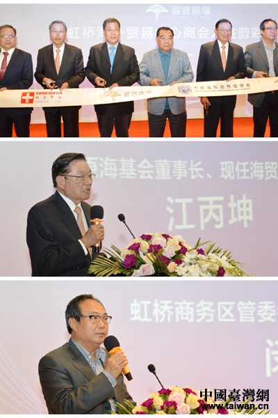 中国台湾网10月30日上海讯 10月29日下午,"虹桥海外贸易中心入驻仪式″在丽宝广场举办,上海市台办主任李文辉、虹桥管委会常务副主任闵师林、台湾知名人士江丙坤、高孔廉等出席仪式,并在商贸界代表、两岸媒体记者百余人的共同见证下进行剪彩。活动中,丝绸之路国际总商会、中欧国际合作促进会、新加坡企业中心、瑞士中心、丽宝集团的负责人相继发表感言。