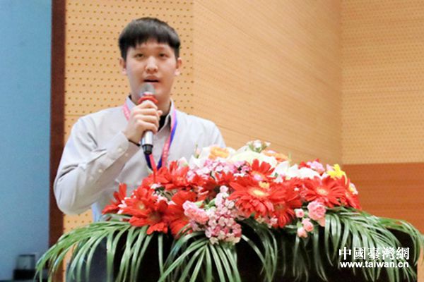 台湾高校学生代表江镇州发言。(图片来源:浙江省台办)