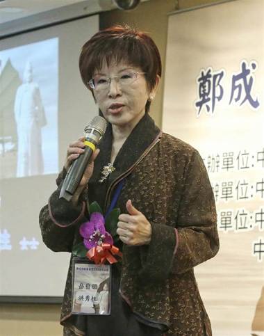 国民党前主席洪秀柱出席“郑成功收复台湾355周年论坛”。(图片来源:台湾“中时电子报”)