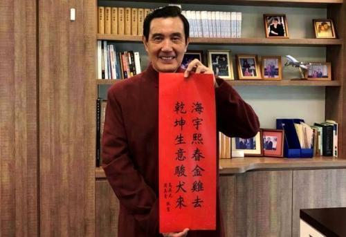 马英九今年的春联“海宇熙春金鸡去,乾坤生意骏犬来”。(图片来源:台湾《联合报》)