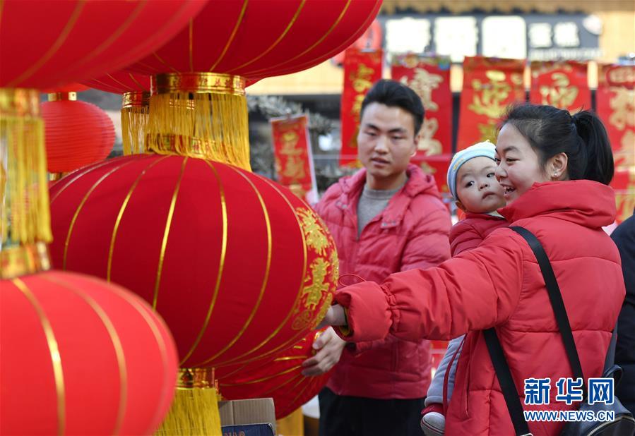 2月13日,市民在山东省枣庄市年货一条街选购新年饰品。春节将至,各地红红火火,一派喜气景象。 新华社发(孙中喆 摄)