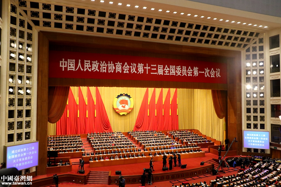 3月15日,全国政协十三届一次会议在北京人民大会堂举行闭幕会。(中国台湾网 卢佳静 摄)