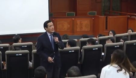 马英九在东吴大学演讲。(图片取自台媒)