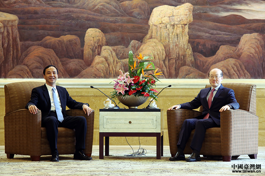 刘结一在上海会见了新北市市长朱立伦一行。(中国台湾网 何建峰 摄)