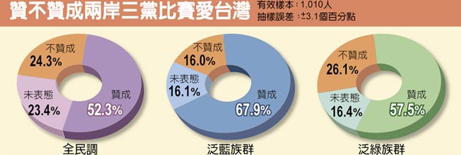 赞不赞成两岸三党比赛爱台湾民调。(图片来源:台湾《中时电子报》)