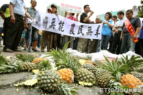 据报道,菠萝价崩,目前南部产地收购价竟剩不到5元(新台币,下同),虽然“农委会”已提出补助拯救产地价,但仍难平怒火。果农号召300人北上怒喊“赖清德下台、林聪明下台”,一路从“立法院”游行至“行政院”砸菠萝抗议。