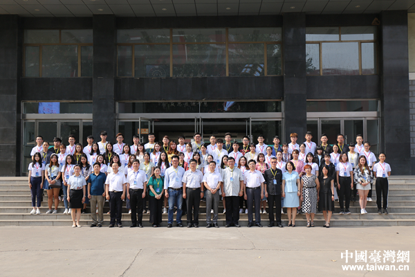 台湾参访交流团与山西工程技术学院师生代表合影。(中国台湾网 袁楚 摄)