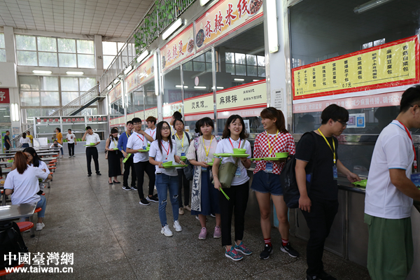 两岸师生共同在校园食堂用餐,气氛融洽。(中国台湾网 袁楚 摄)