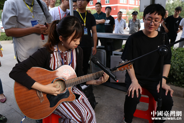 台湾青年与校园乐团进行才艺互动。(中国台湾网 袁楚 摄)