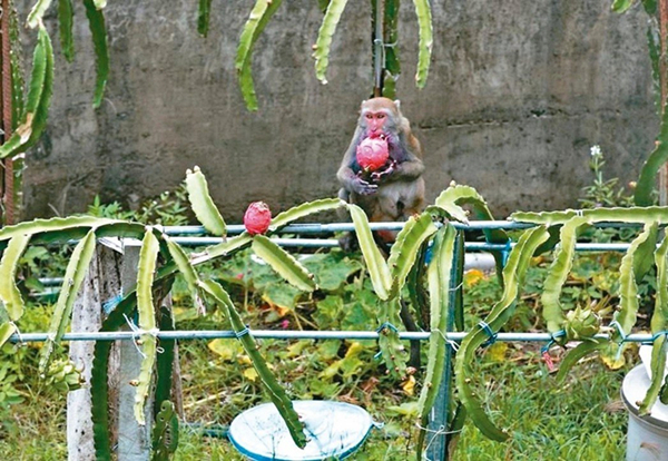 屏东县满州乡火龙果又价跌,果农苦笑:就让猴子尽情享用吧。(图片来源:台湾《联合报》)