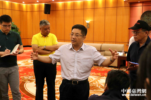 “海峡两岸记者特区行”采访团团长、国务院台湾事务办公室新闻局局长马晓光接受两岸记者采访。(中国台湾网 尹赛楠 摄)