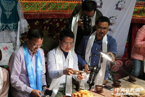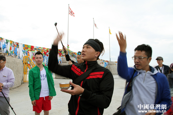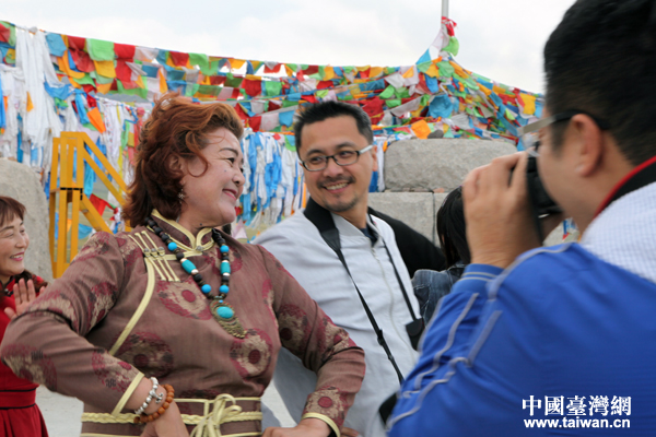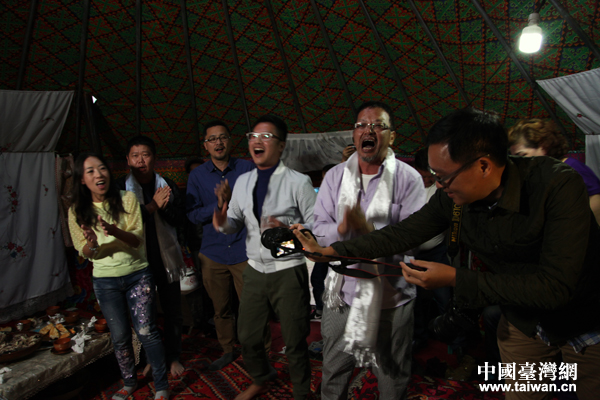 “你好新疆——塞外江南大轰趴”采风团的90后台湾自媒体人对蒙古族的礼仪不太了解, “老司机”、台湾美食生活旅游类外景摄影达人温士凯贴心给他们指导。(中国台湾网 王怡然 摄)