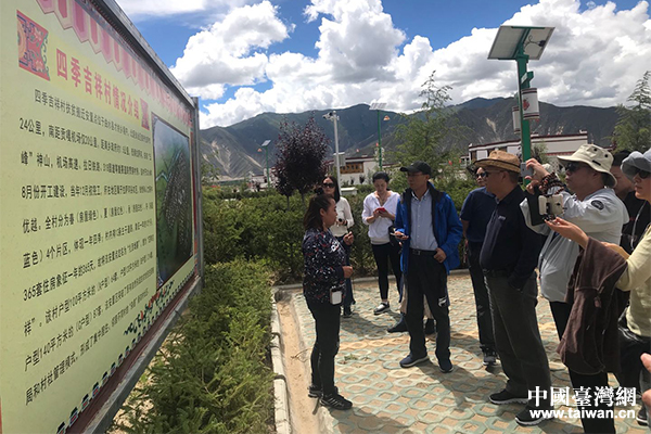 四季吉祥村第一书记索朗央吉向到访的海内外媒体团介绍新村建设发展情况。(中国台湾网 普燕 摄)