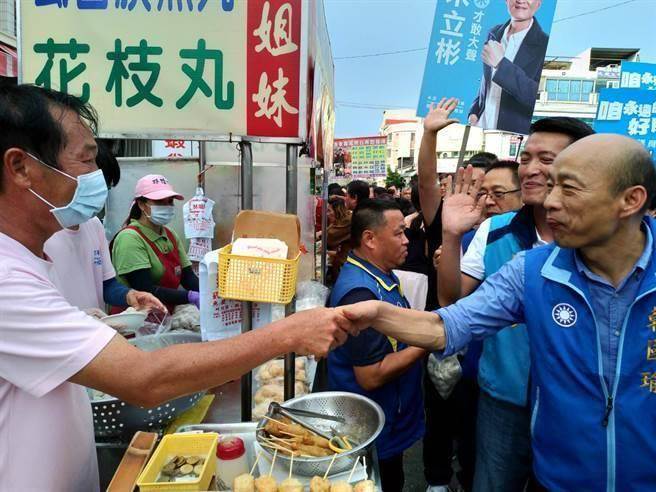 韩国瑜走访摊贩争取支持。(图片来源:台湾“中时电子报”)