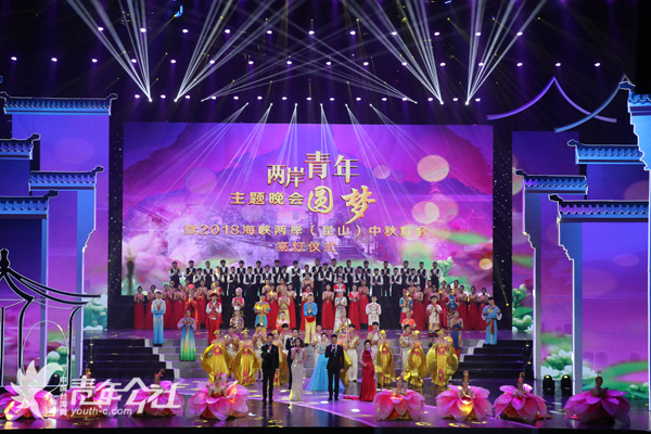 两岸青年代表在晚会现场共同为灯会亮灯。本次晚会共有两地风情歌曲联唱、民族舞蹈戏曲等十余个精彩节目,突出昆山与台湾两地元素,彰显了“两岸青年圆梦”与“中秋月满人团圆”的主题,促进了两岸青年文化交融和心灵契合,勾勒出两岸融合发展发展的美好未来。