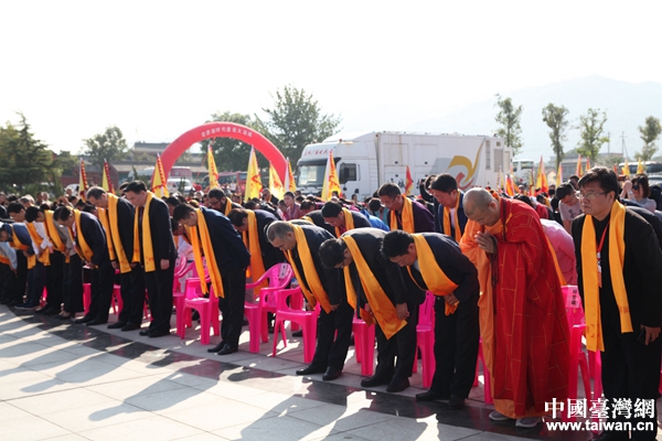 众来宾向武圣关公行鞠躬礼。(中国台湾网 许晗 摄)