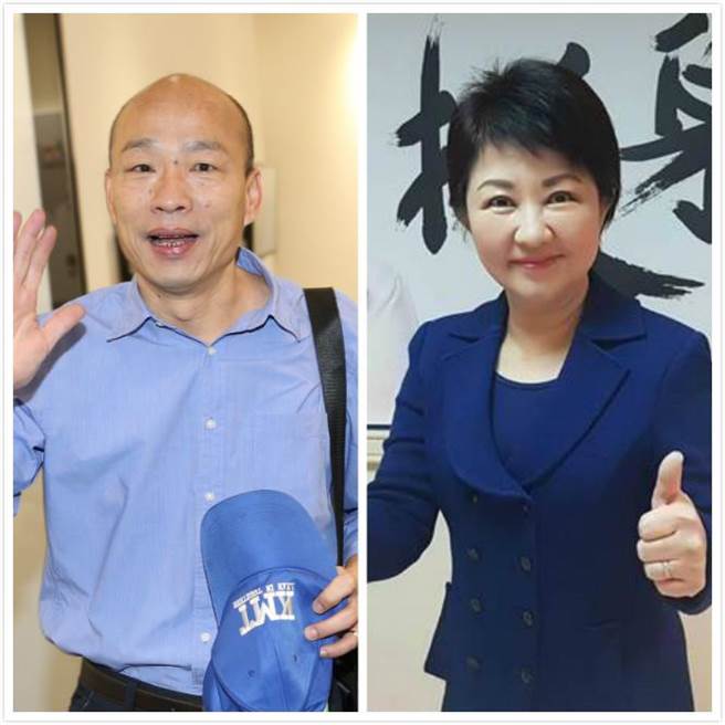国民党高雄市长参选人韩国瑜(左)、台中市长参选人卢秀燕(右)。(图片来源:台湾“中时电子报”)