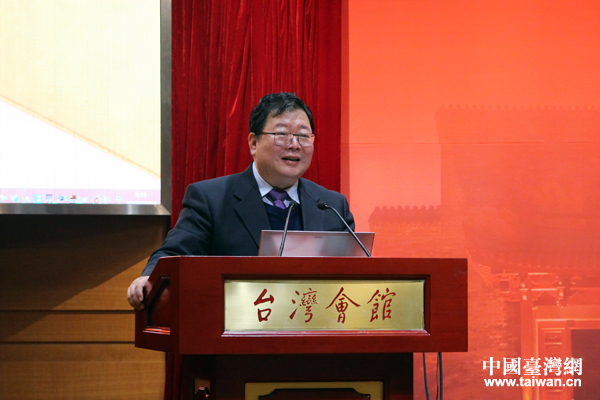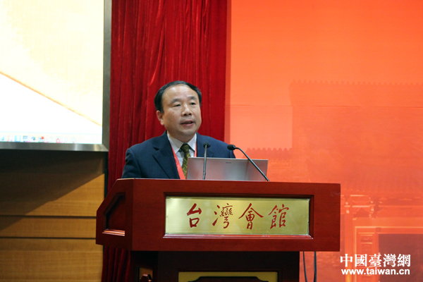 海峡两岸关系协会副会长孙亚夫进行主旨发言。(中国台湾网 张洁 摄)