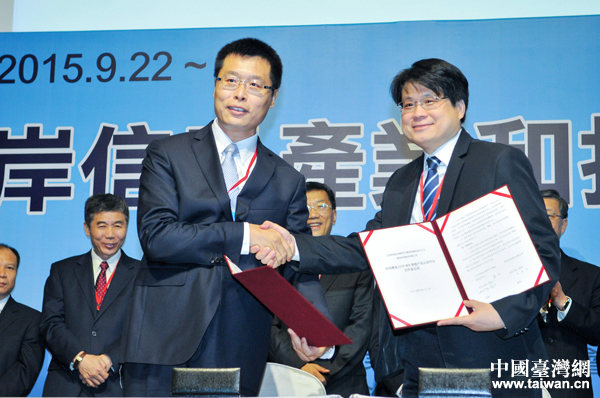 2015年9月,工信部副部长怀进鹏见证联发科技与工信部软件与集成电路促进中心签署战略合作协议副本。(中国台湾网发 联发科技供图)