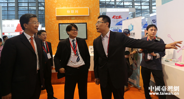2016年4月,中国电博会上联发科技工作人员给工信部副部长怀进鹏汇报相关工作。(中国台湾网发 联发科技供图)