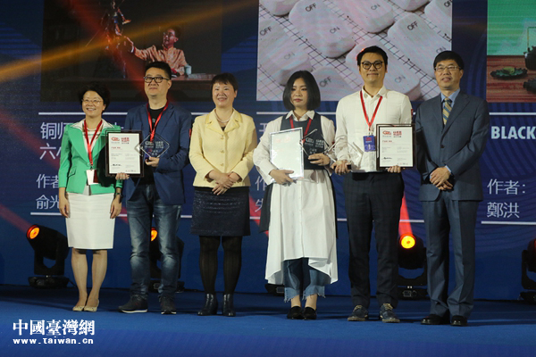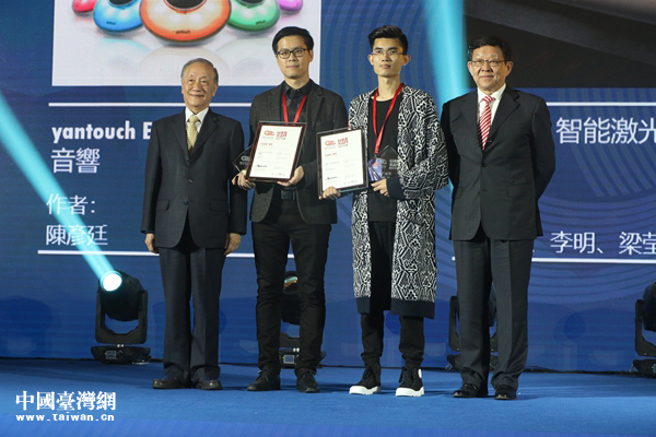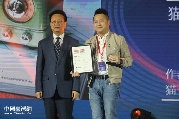浙江省台办主任庄跃成,中共宁波市委常委、统战部部长梁群为概念组金奖获奖者颁奖。(中国台湾网 尹赛楠摄 )