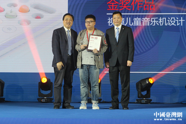 十二届全国人大常委会副委员长陈昌智为产品组金奖获得者颁奖。(中国台湾网 尹赛楠摄 )