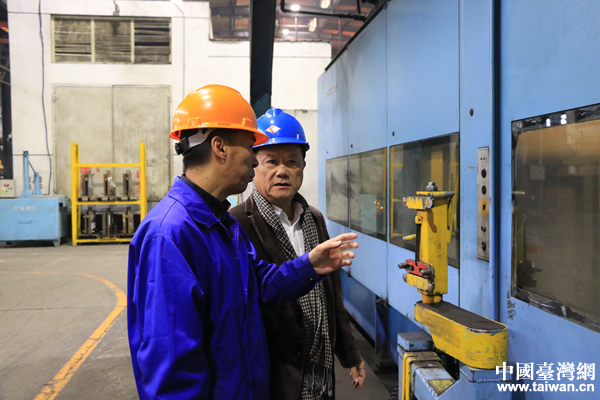 罗文德在工厂负责人的陪同下,视察厂内生产情况。(中国台湾网 扶海涛 摄)