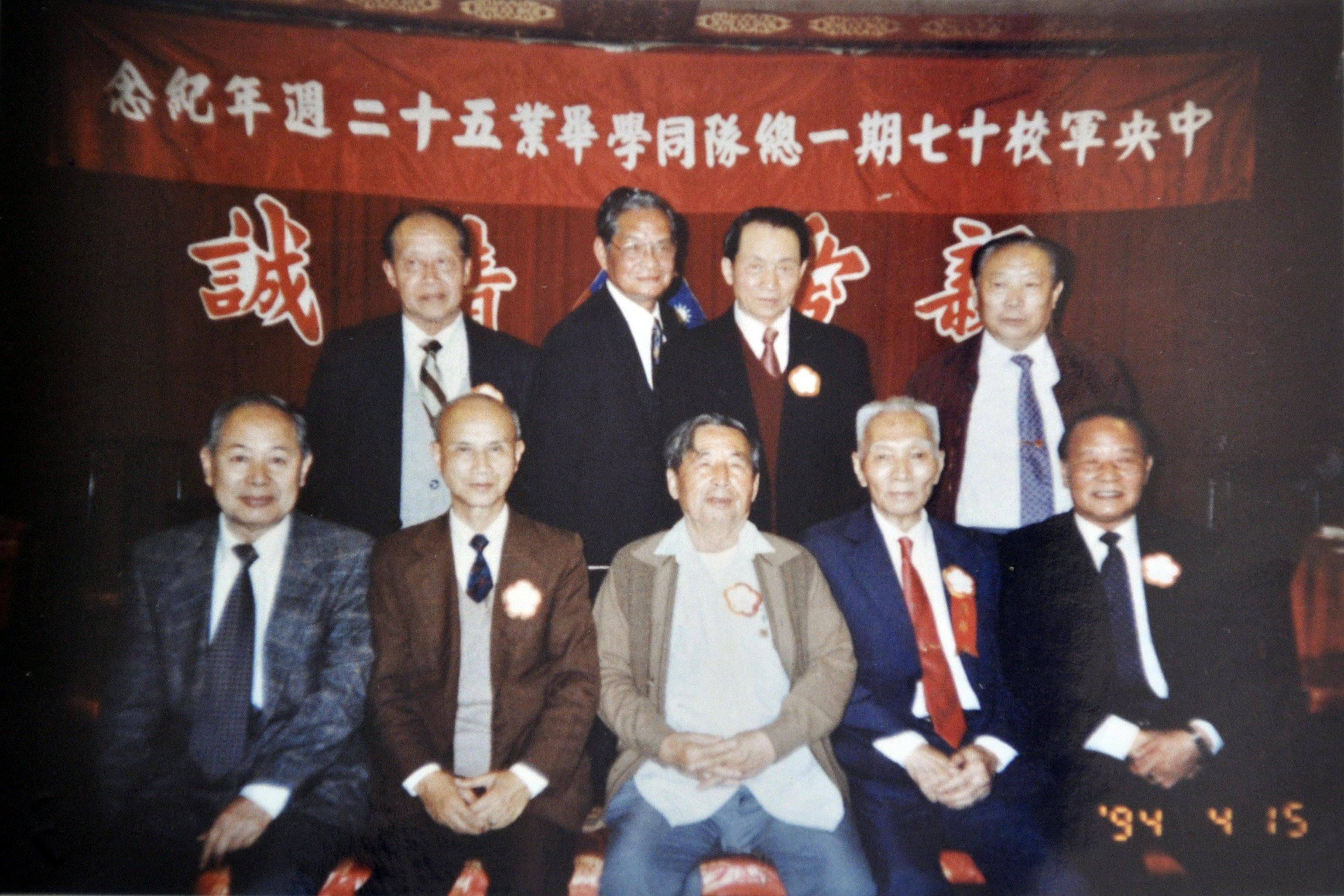 1994年4月罗文治(前排中)与台湾黄埔同学合影。(图片由罗吉元提供)