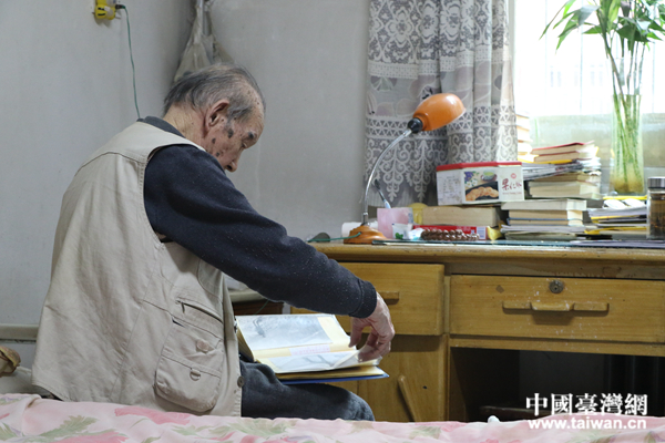 93岁种志斌,坐在床头翻看老照片。(中国台湾网 扶海涛 摄)