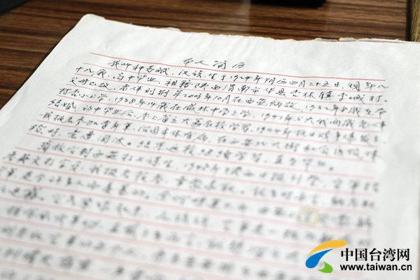 种志斌为入党所写的《个人简介》。(中国台湾网 扶海涛 翻摄)