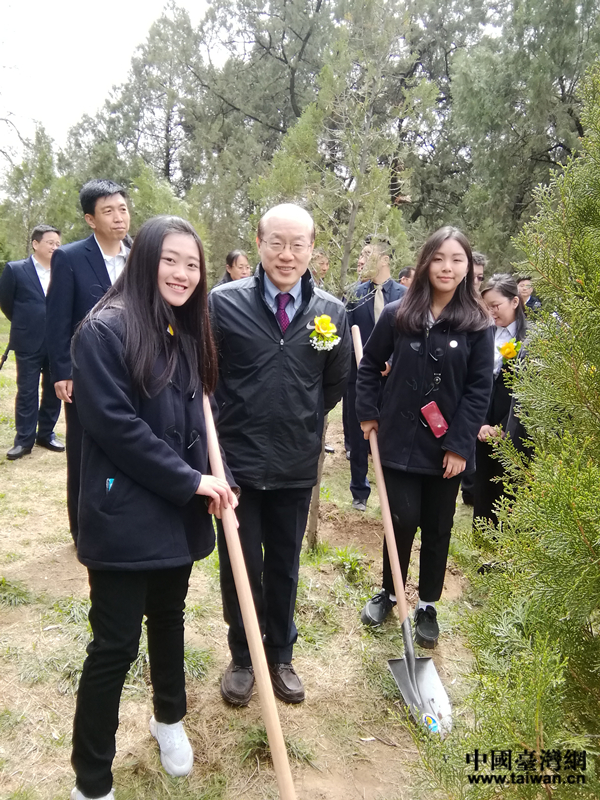 4月5日上午,中共中央台办、国务院台办主任刘结一与台湾青年在黄陵县桥山“思源林”同植“连根柏”。(中国台湾网发)