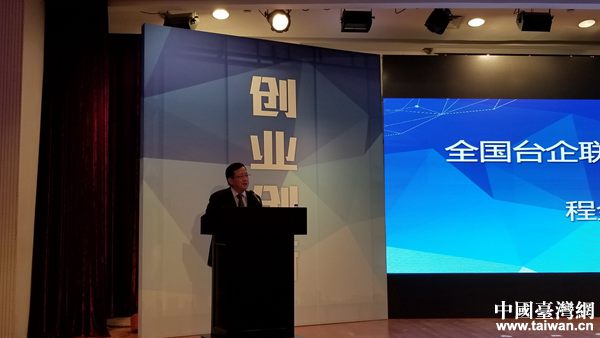全国台企联驻会常务副会长程金中在大会现场致辞。(中国台湾网 齐昕 摄)