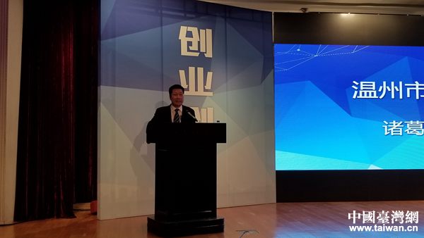 温州市政协副主席诸葛启钏在大会现场致辞。(中国台湾网 齐昕 摄)