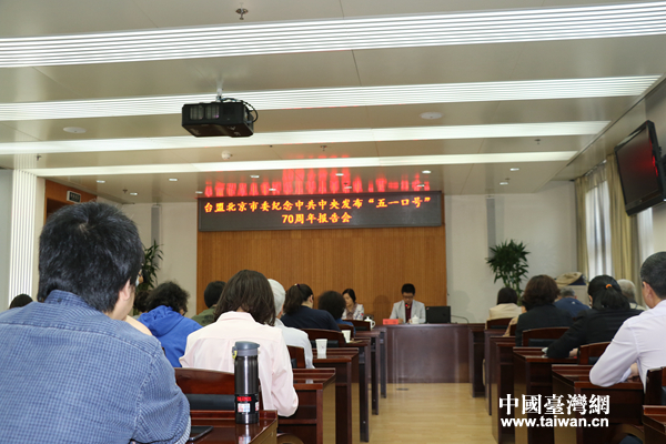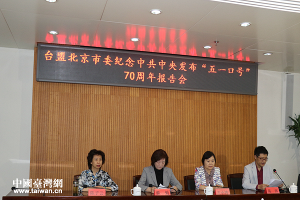 4月28日,台盟北京市委举办纪念中共中央发布“五一口号”70周年报告会。(中国台湾网 汪明珠 摄)